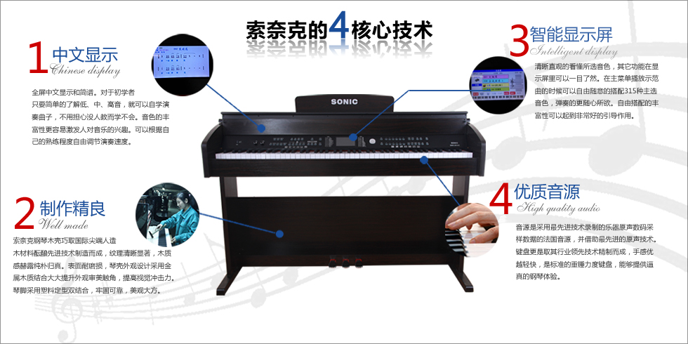 中山市小欖鎮名樂電子有限公司是一家專業從事電子樂器產品研發、生產、銷售服務于一體的高新技術企業。已獲得相關產品的3C、CECB等認證。主要生產經營品牌索奈克(Sonic)電鋼琴和電子琴等。